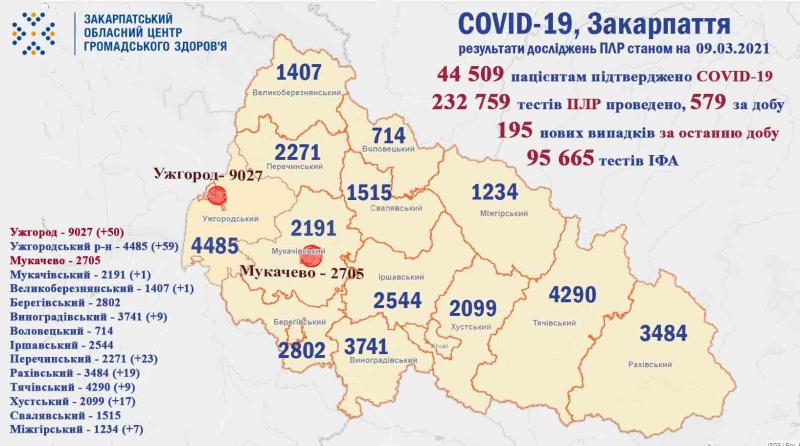 За минулу добу у 195 пацієнтів підтверджено коронавірус методом ПЛР. З них 2 – медики та 5 – діти;
