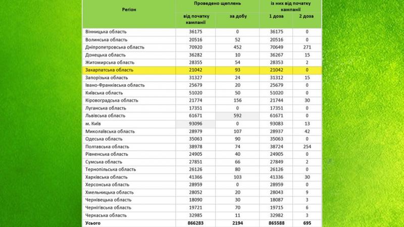 - З 27 квітня на Закарпатті збільшили кількість пунктів щеплення до 51-го. Також в області діють 13 мобільних бригад для проведення вакцинації.