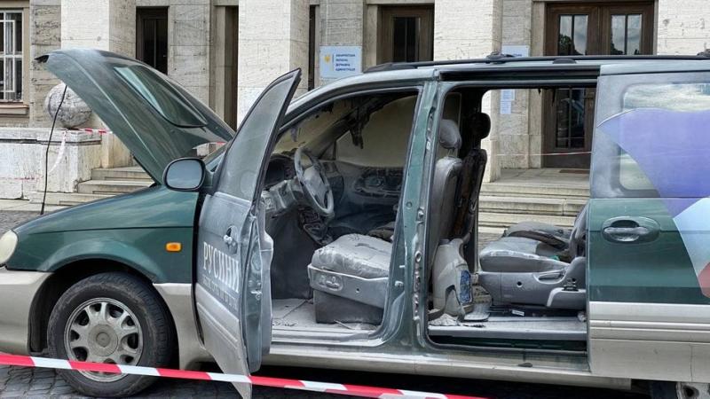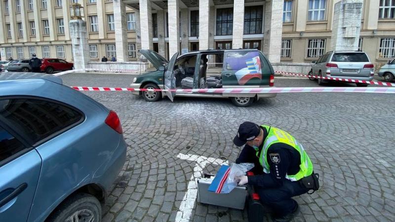 Віталій Глагола повідомив, що на місці події працюють слідчі поліції. Автомобіль загасили охоронці адмінбудівлі.