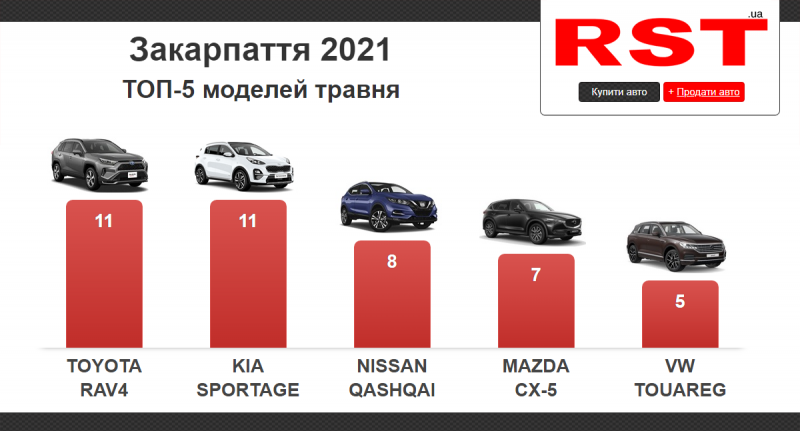 КросовериToyota RAV4 і Kia Sportage отримали найбільшу кількість продажів серед моделей.Також у регіоні часто реєстрували Nissan Qashqai.