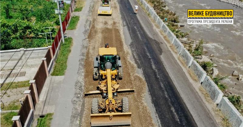 Кілька кілометрів дороги уже на фінальній стадії: влаштовують бордюрний камінь та останній шар асфальтобетону. Також у планах відновити маршрут через центр міста Рахів.