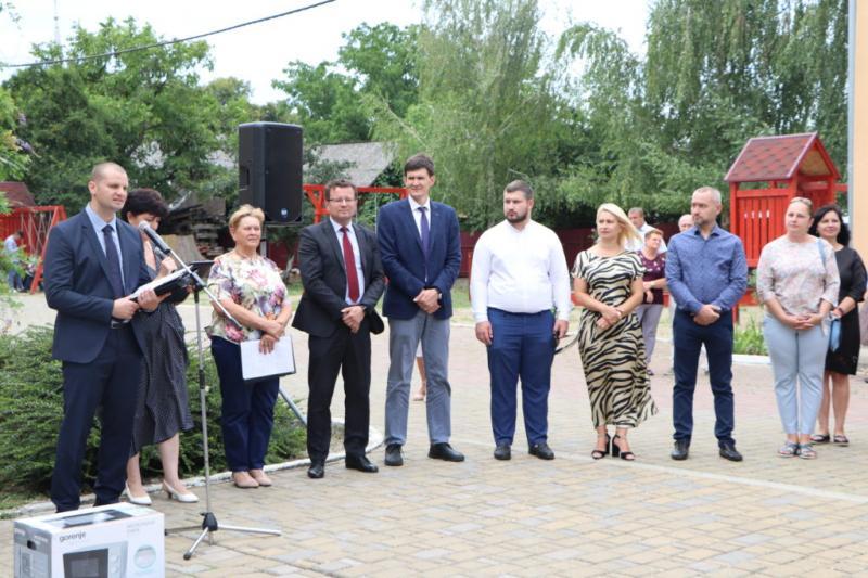 Потім захід продовжився у дворі перед будинком, де присутніх привітала директор Дитячого будинку Марія Біро. Вона наголосила, що Дитячий будинок досяг чергової віхи, розпочинається спільне життя п’ятої родини.