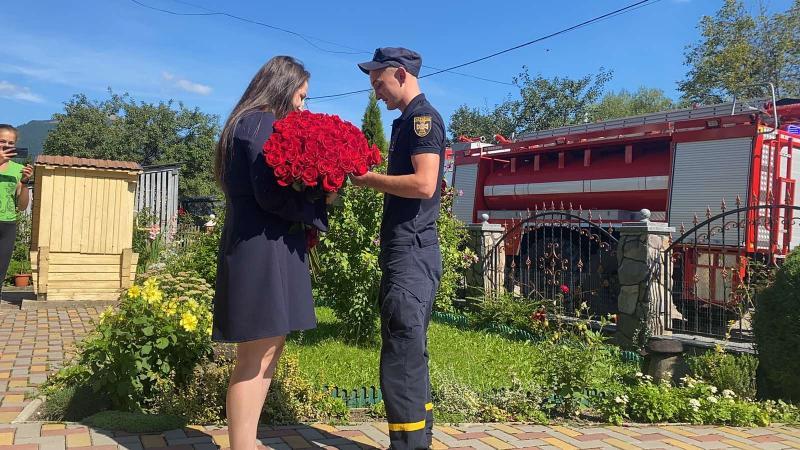Саме таку пропозицію руки та серця влаштував для своєї коханої, вчительки інформатики Синевирської школи Антоніни Матійчин командир відділення державного пожежно-рятувального поста с. Колочава Іван Іваниш.