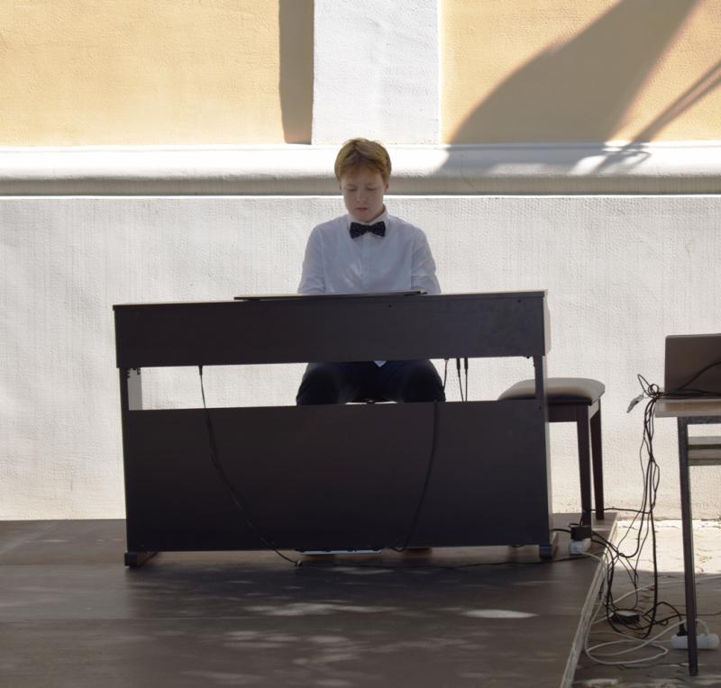 Такі концерти педагогів та вихованців до Дня міста на невеличкій сцені перед будівлею школи вже традиційні. У цьогорічному виступили як учні молодших класів – Петро Реміцкі, Анна Дуб, Ілля Сурмай, так і випускники – Анастасія та Марія Белович. Щирими оплесками вітали глядачі й ансамблі флейтистів (керівник Ганна Гайду), акордеоністів (керівник Катерина Юрик), скрипалів (класу Лариси Лозової), учнів вокально-хорового відділу школи, зокрема вокальний ансамбль під керівництвом Марії Мудранинець. Вели концерт музикознавець Наталія Піцур та її донька, учениця музичної школи Емілія.