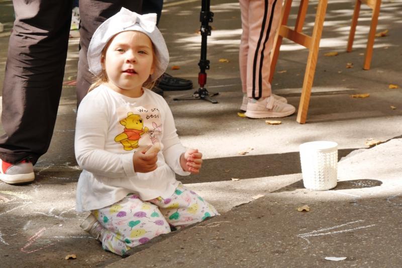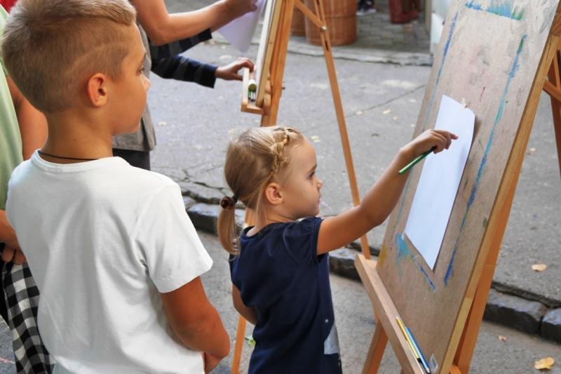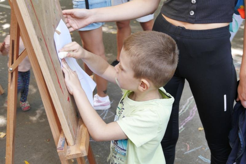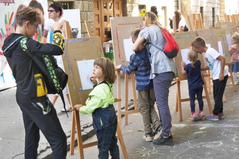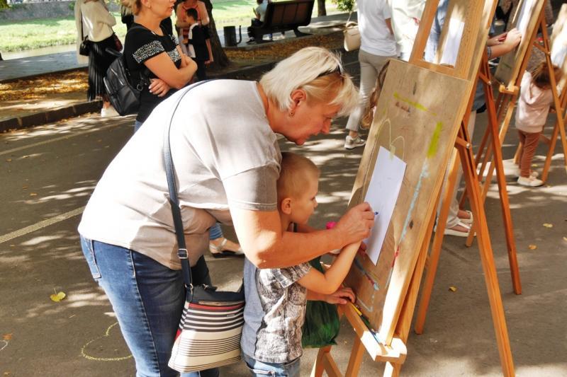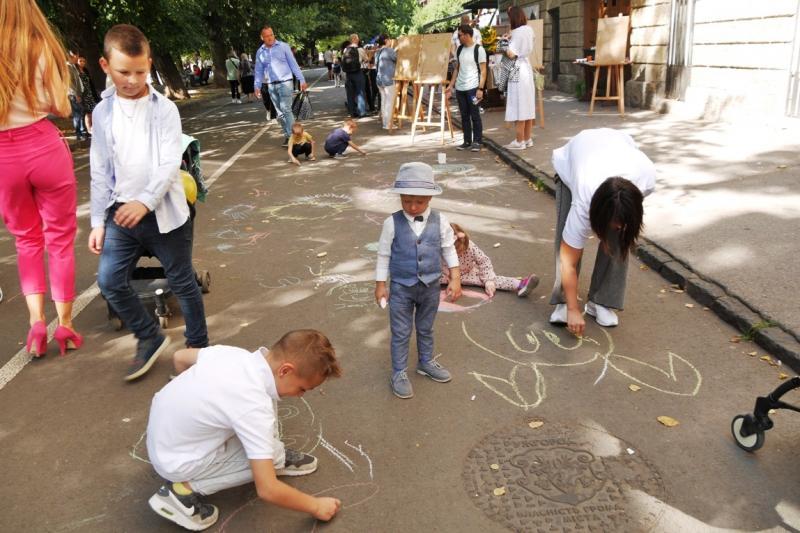 «Місто, в якому я живу» і просто хто що хоче сьогодні у рамках відзначення Дня Ужгорода малюють на набережній Незалежності. Локацію з майстер-класом організували від дитячої професійної студії Петра Свалявчика, яка за особливою методикою працює в місті з 2019 року.
