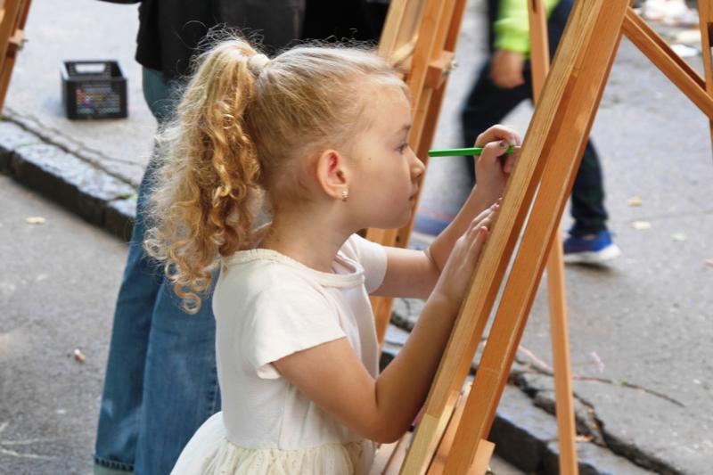 Найрізноманітніші фарби, усілякі кольори, крейда, папір, мольберти, асфальт – усе до послуг охочих спробувати свої таланти.