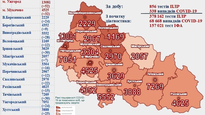 На Закарпатті за добу виявили 338 нових випадків COVID-19