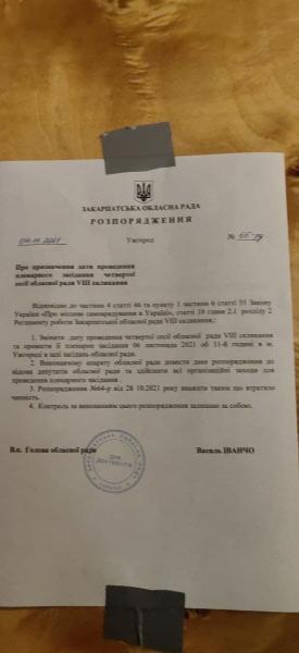 Проте на дверях сесійної зали висить ррозпорядження Василя Іванчо про те, що сесія призначена на 6 листопада.