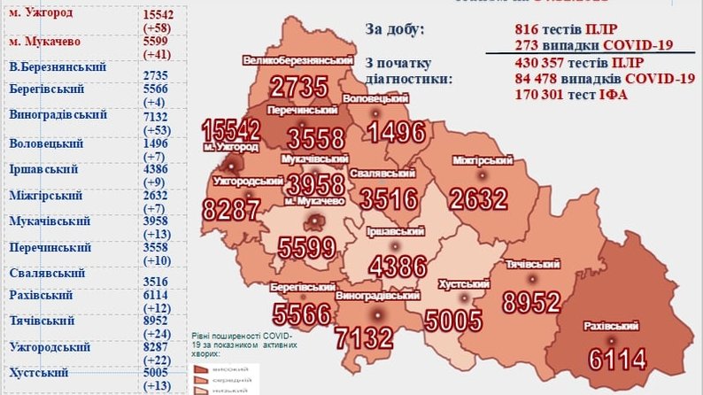 На Закарпатті за добу виявили 273 випадки COVID-19