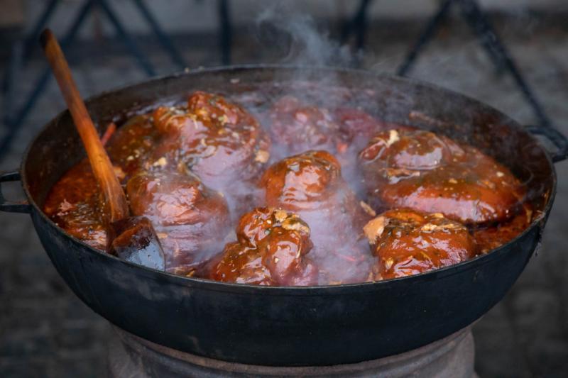 Традиційну продукцію – вина, мед, сири, ковбаси тощо – представляють понад три десятки місцевих виробників. Також на фестивалі можна скуштувати традиційні закарпатські страви.