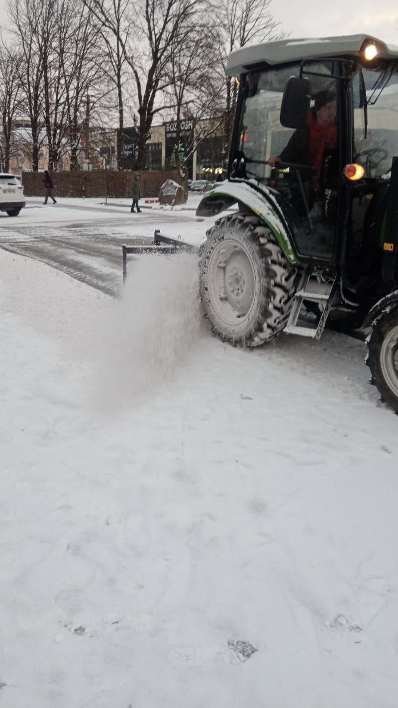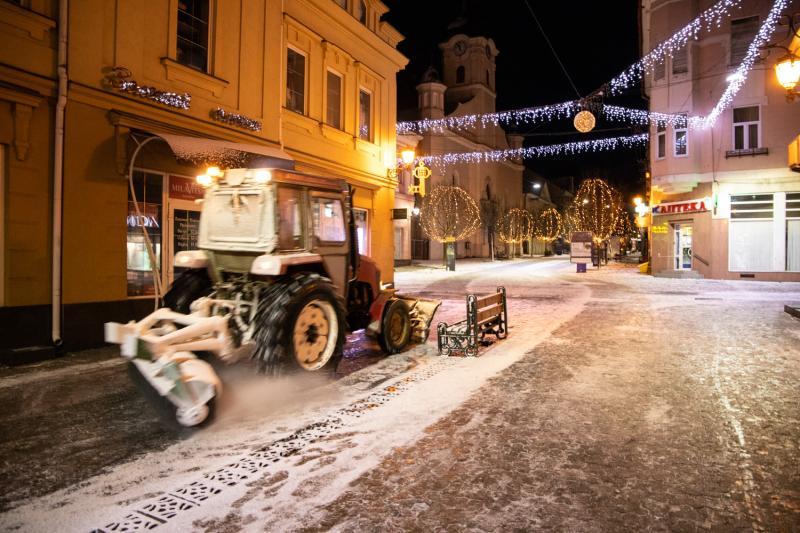 Чотири комплексні дорожні машини, два міні-трактори задіяли в Ужгороді напередодні для прибирання снігу.