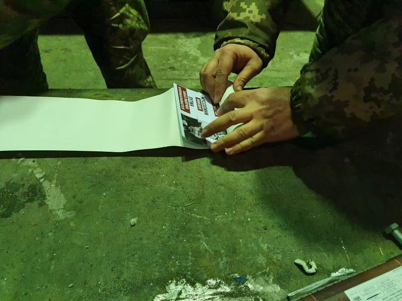 Артилерійський дивізіон 128-ї окремої гірсько-штурмової бригади обстрілює територію, де розміщені російські війська, спеціальними снарядами, напакованими листівками з детальними інструкціями здачі в полон.