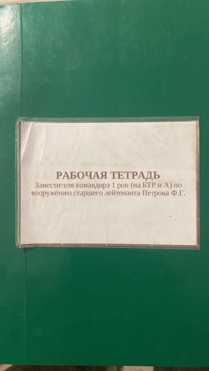 Рабочая тетрать замкомандира 1-й роты особого назначения старшего лейтенанта Петрова Ф.Г. зі списком особового складу: 14 військових, у тому числі один офіцер;