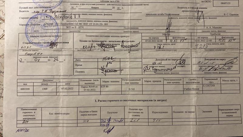 Відомість про бойову техніку підрозділу – чотири бронетранспортери «БТР-80» і три військові вантажівки «Урал 4320».