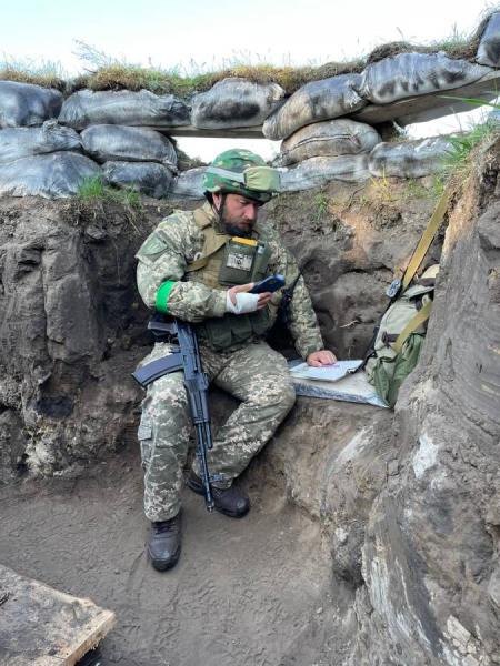 «Всі хлопці знають, що я читаю пари. Тому мій графік бойових чергувань у дні занять підлаштовують відповідно. Бойове чергування триває добу і що чотири години потрібно бути на позиції. Тобто 4 години чергуєш, тоді 4 відпочиваєш. Тож коли в мене пари, я чергую вночі, а одразу після чергування вранці проводжу пару. Крім того, в інші дні займаюся облаштуванням побуту, копаю траншеї тощо».
