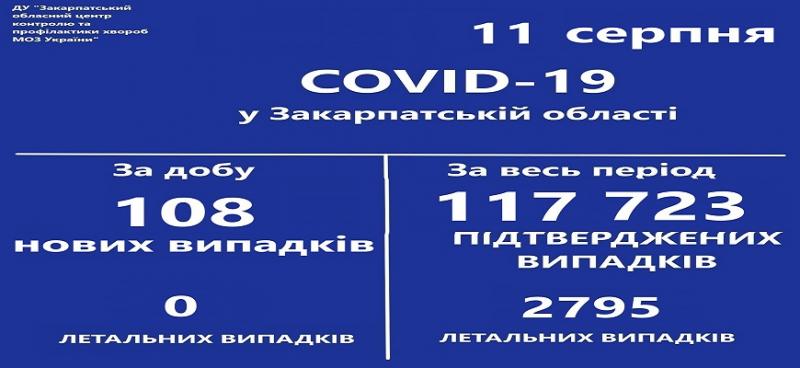 ДУ “Закарпатський обласний центр контролю та профілактики хвороб МОЗ України” повідомляє про ситуацію з коронавірусом в області станом на 11 серпня: