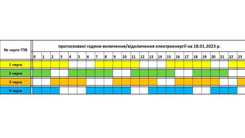 Прогнозований графік відключень електроенергії на Закарпатті на 18 січня опублікували на сторінці "Закарпаттяобленерго" у Facebook. Наразі в регіоні діють чотири черги погодинних відключень.