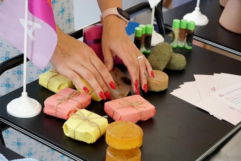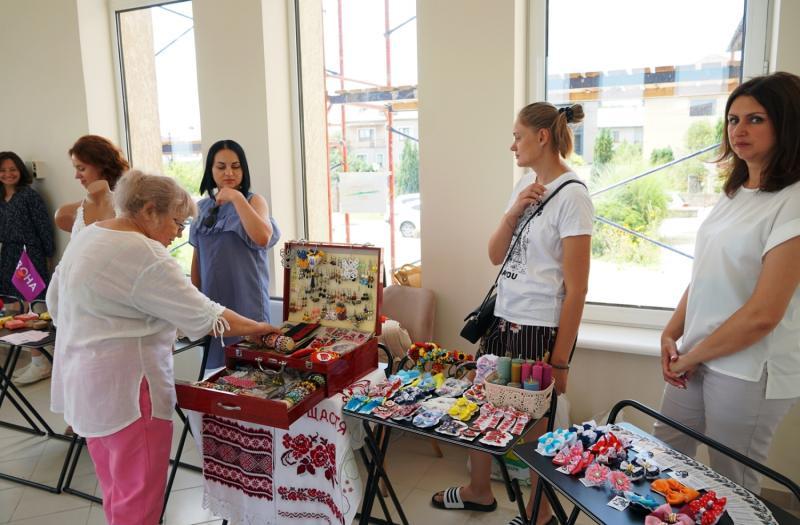 Також представили вироби, які власноруч змайстрували учасниці хабу після завершення курсів із хендмейду, зокрема миловаріння, шиття, виготовлення дизайнерських корсетів тощо.