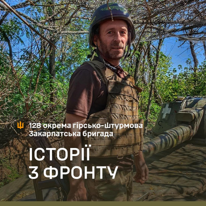 Володимир, механік-водій самохідної артилерійської установки, уже вдруге в 128 ОГШБр. Вперше він служив за контрактом із 2016 по 2020 рік, пройшов зону АТО-ООС, а в кінці лютого минулого року сам прийшов у військкомат і попросився в свою частину. Один із старших синів бійця зараз вчиться в сухопутній академії на артилериста, ще один також служить у 128 гірсько-штурмовій бригаді. Дома на Прикарпатті Володимира чекає дружина й троє малолітніх дітей, тобто чоловік мав підстави не йти в ЗСУ, а залишитися дома з сім’єю. Проте він пішов на війну.