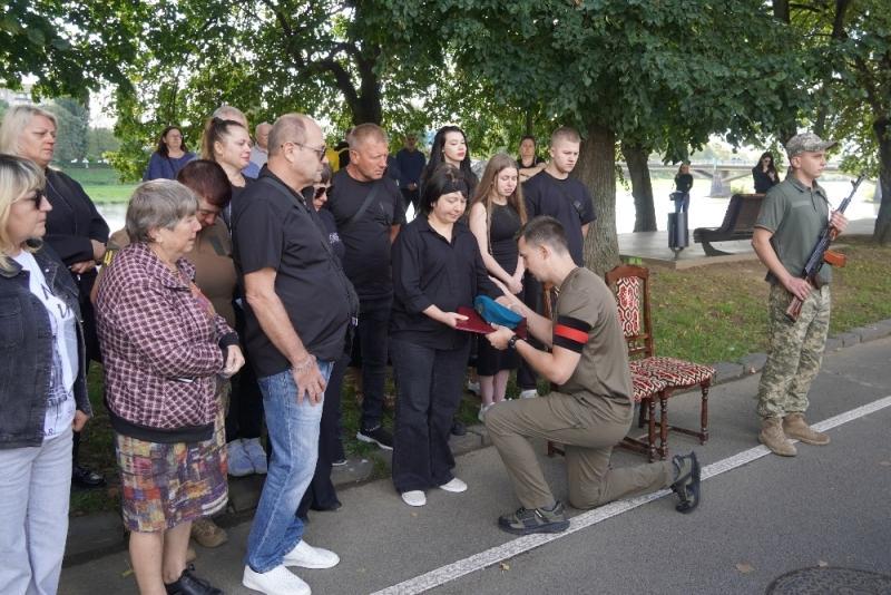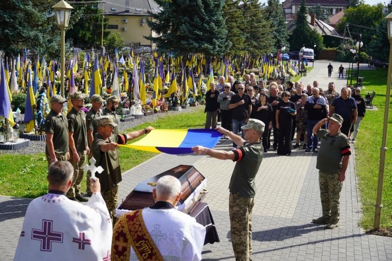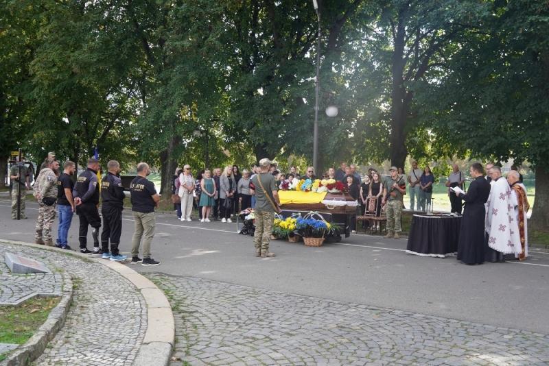Чин похорону відбувся на набережній Незалежності. Віддати шану воїну прийшли рідні, міський голова Ужгорода Богдан Андріїв, військові, ветерани російсько-української війни, містяни.