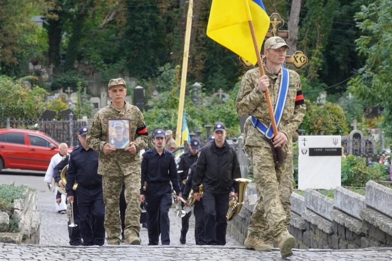 Після жалобної ходи захисника поховали з військовими почестями на Пагорбі Слави.