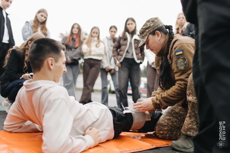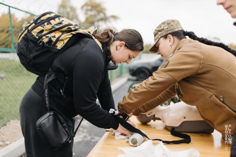 Не менш цікавим став блок із тактичної медицини. Інструктори показали, як правильно накладати турнікет, зупиняти кровотечу та фіксувати пов’язки. Учні зосереджено відпрацьовували дії, розуміючи, що ці знання сьогодні рятують життя.
