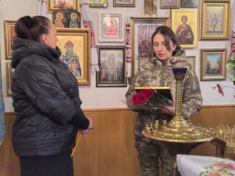 Після служби прикордонники вручили пам’ятну відзнаку матері загиблого прикордонника Дмитра Цацури.