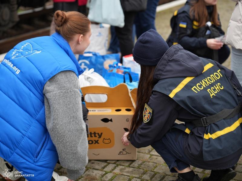 Закарпаття вкотре стало прихистком для тих, хто змушений тікати від війни. Напередодні на залізничному вокзалі Мукачева рятувальники зустріли дві родини з Дніпропетровщини - семеро людей, з яких найстаршій 67 років, а наймолодшому лише 2. Серед них п’ятеро діток та їхні пухнасті улюбленці, котики Марфа і Льова. На пероні евакуйованих зустріли рятувальники та психологи ДСНС, які підтримали людей теплими словами й турботою. Адже їм потрібен не лише дах над головою, а й відчуття безпеки та емоційна підтримка. Разом із рятувальниками на зустріч прибули представники громадської організації «Проліска», Товариства Червоного Хреста та служби екстреної медичної допомоги.