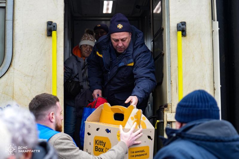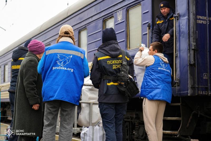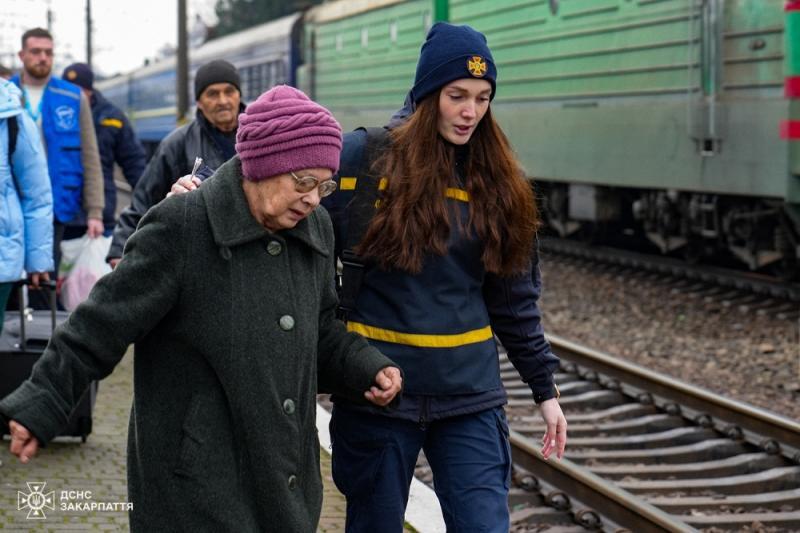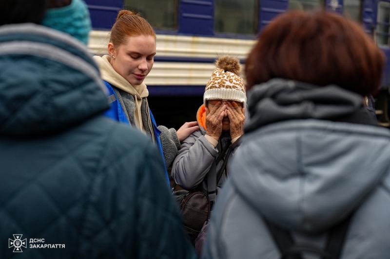 Цього разу евакуаційний потяг доставив у Мукачево три родини з Дніпропетровської області, які залишили свої домівки в пошуках безпеки. Рятувальники, психологи та волонтери зустріли на залізничному вокзалі семеро людей, серед яких — маломобільні громадяни, літні люди та двоє дітей.