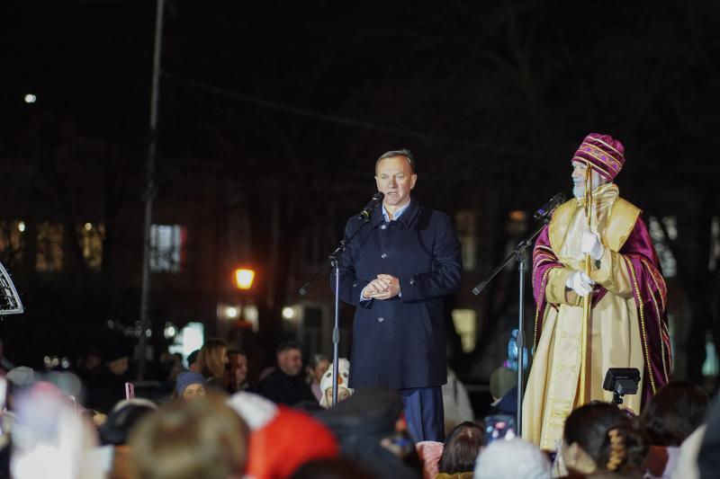 Міський голова Богдан Андріїв привітав ужгородців, гостей міста із прийдешніми Різдвяно-Новорічними святами, побажав миру й перемоги, злагоди в родинах і подякував українським воїнам, які щодня виборюють можливість для нас зустрічати свята під мирним небом у рідному місті, за їхню відвагу й самопожертву.