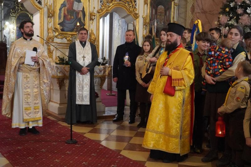 Цьогоріч, як і в попередні роки, Вифлеємський вогонь до нашого міста доставили словацькі скаути, які передали його ужгородським пластунам. У Хрестовоздвиженському греко-католицькому кафедральному соборі від нього запалили храмову свічу, також кожен присутній на Літургії міг запалити від нього свічку.
