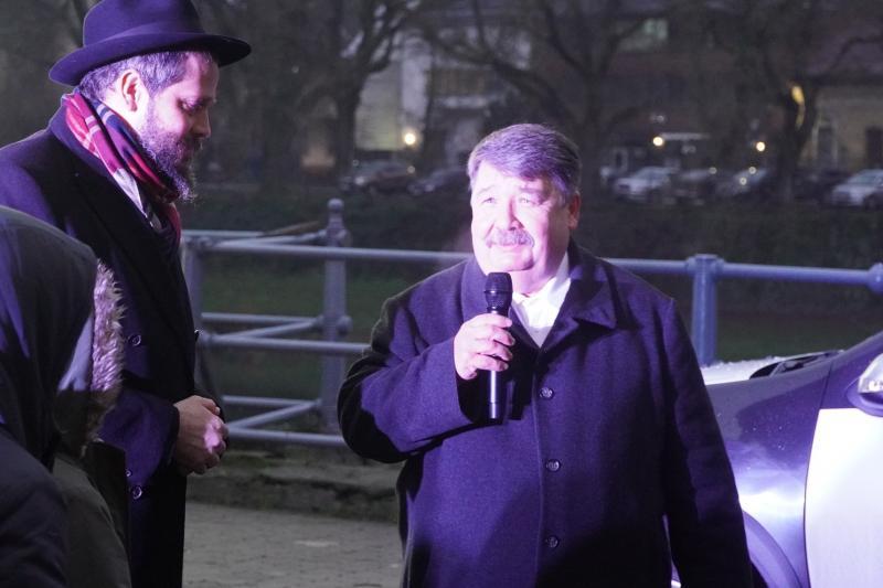 Під час церемонії головний рабин Ужгорода та Закарпатської області Вільгельм Менахем Мендель прочитав традиційну молитву. Привітав присутніх зі святом і міський голова Ужгорода Богдан Андріїв, побажав миру, злагоди, світла в серцях і впевненості в тому, що добро завжди перемагає.