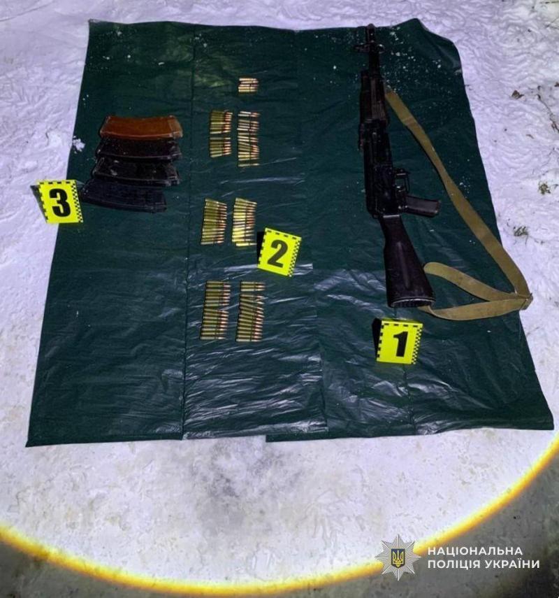 З місця події поліція вилучила автомат АК-74М, чотири магазини, споряджені 93 бойовими набоями, дві гранати Ф-1 із запалами, а також гроші, отримані незаконним шляхом.