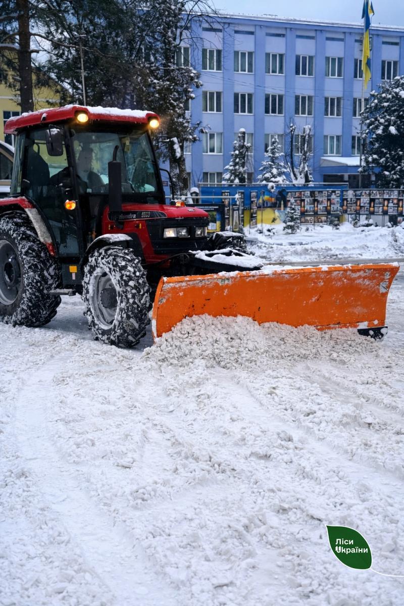 Через складний рельєф і велику кількість снігу наявна в громадах техніка не всюди справляється з навантаженням. Тож лісівники оперативно залучили трактори та спеціальну техніку, аби підтримати громади у критичний момент. У першу чергу лісівники допомагають органам місцевого самоврядування, однак паралельно проводять очищення від снігу і лісових доріг.
