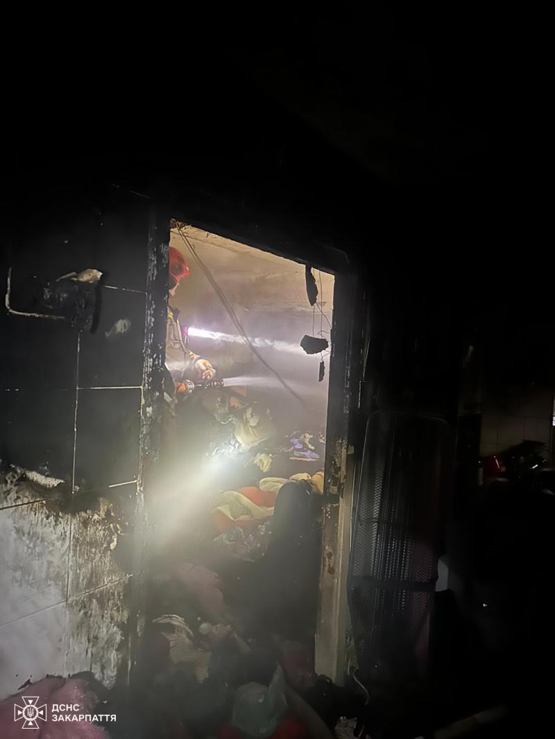 На місце події прибули вогнеборці 3-ї державної пожежно-рятувальної частини міста Ужгород. Через щільне задимлення вони працювали в апаратах захисту органів дихання та зору. Окрім безпосереднього гасіння пожежі, рятувальники провели евакуацію двох мешканців із небезпечної зони третього поверху.