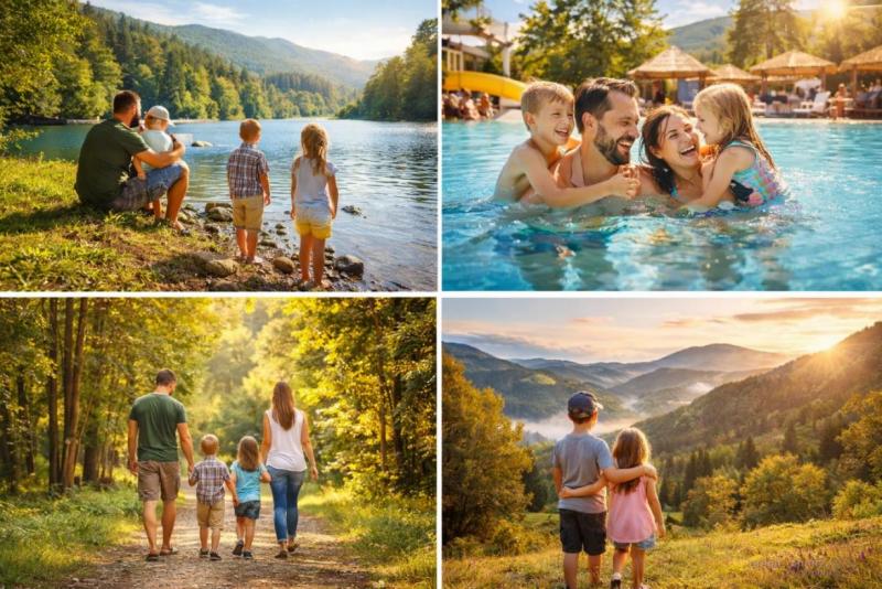 Для сімейного формату краще обирати готелі з басейном або комплекси з дитячими зонами, а також планувати короткі прогулянки на природі. Термальні локації (Берегово, Косино) теж можуть підійти, якщо є сімейні зони й комфортна інфраструктура. Дітям подобаються канатні парки, оглядові майданчики та нескладні гірські маршрути.