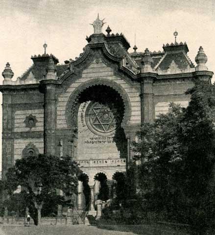 Будівлю зведено у 1904 році як велику ортодоксальну єврейську синагогу. На той час Ужгород мав численну єврейську громаду, а храм був одним із її духовних та культурних центрів. Синагога вирізнялася розкішною архітектурою: у її образі поєднувалися неомавританський та візантійський стилі, аркові вікна, декоративна цегла, символіка Старого Заповіту та зірка Давида. Простір усередині мав хорошу природну акустику, що згодом відіграло важливу роль у новому призначенні будівлі.
