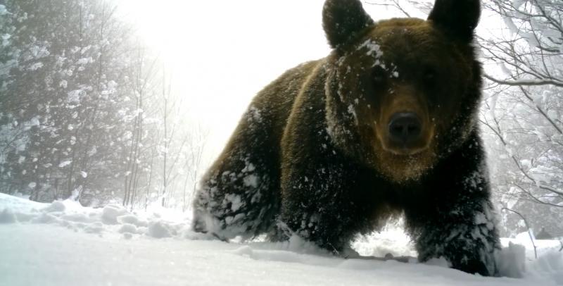В Ужанському Нацпарку фотопастки зафіксували ведмедицю з малятами, які не сплять узимку
