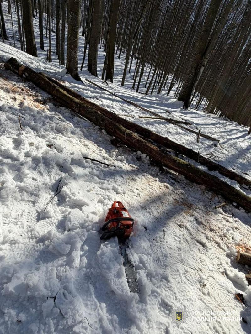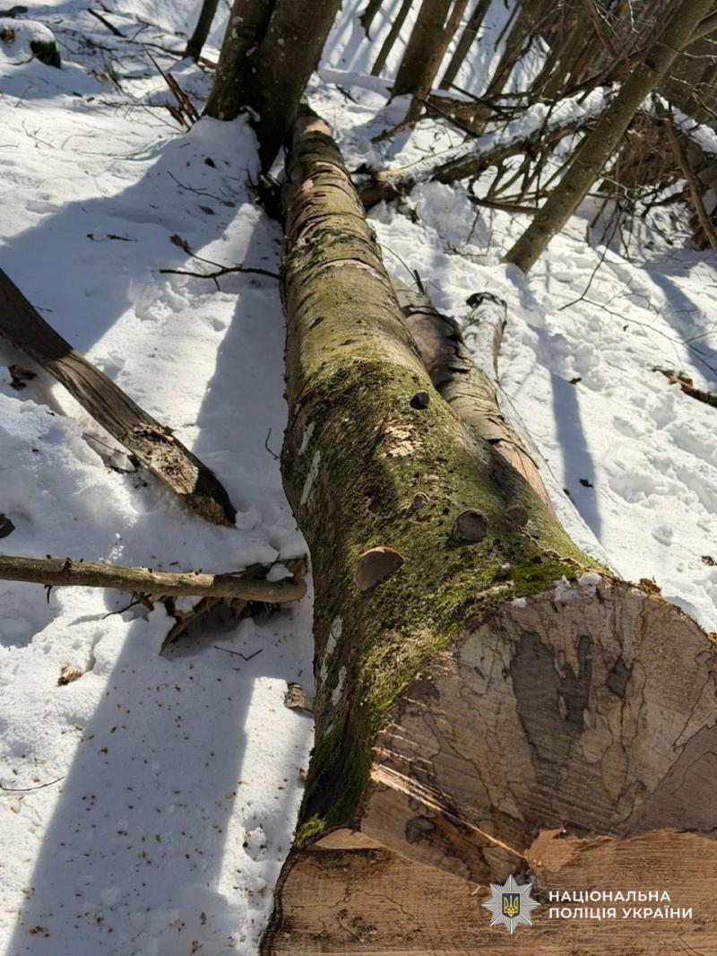 Під час відпрацювання отриманої інформації на місці правоохоронці застали групу чоловіків, які здійснювали вирубку дерев породи «Бук», не маючи при цьому жодних дозвільних документів. Під час огляду виявлено десятки вже зрізаних дерев.