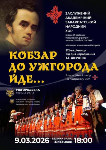 Колектив спільно з управлінням у справах культури, молоді та спорту Ужгородської міської ради організовує великий святковий концерт із нагоди дня народження Кобзаря.