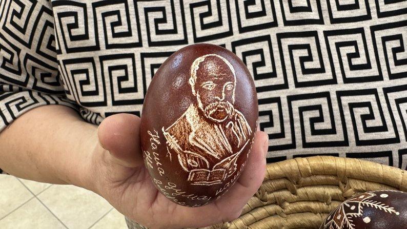 "Більша частина писанок йде на виставку-ярмарок, їх можна купувати собі для дому й тим самим допомагати нашим військовим. На виставці представлені майстрині з різних куточків нашої України, а також із-за кордону. З-за кордону це є Польща, Хорватія".