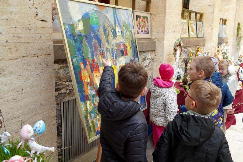 Також школярі завітали до атріуму обласної військової адміністрації, де зараз діє тематична виставка дитячих робіт. Юні гості мали змогу відчути атмосферу свята через оригінальні роботи своїх ровесників.