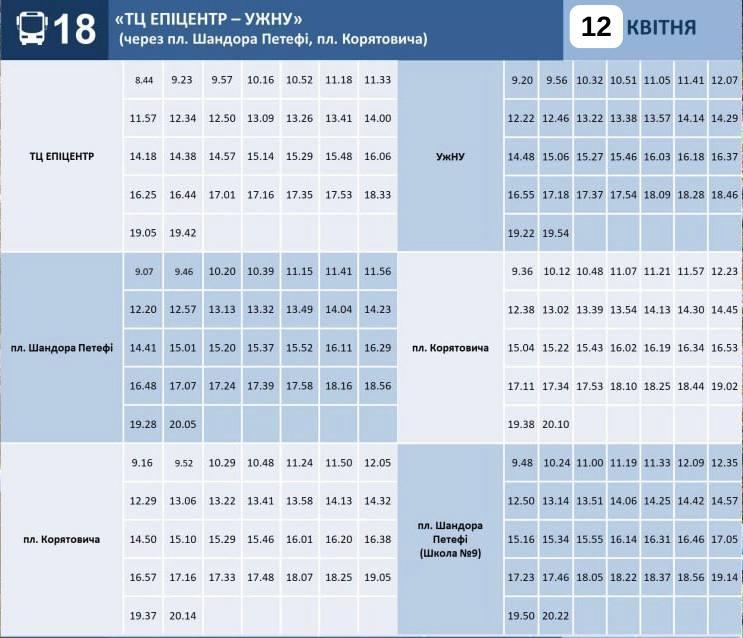 - На маршруті №18 в Ужгороді змінено графік руху і збільшено кількість автобусів (ГРАФІК)