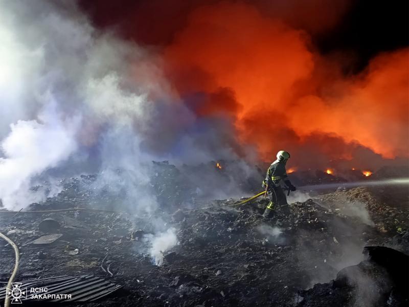 Майже добу вогнеборці Ужгородщини приборкували масштабне займання на сміттєзвалищі у місті Чоп, що на Ужгородщині. Складність гасіння полягала у глибокому заляганні осередків тління, через що вогонь постійно поширювався. Пожежу на площі 1000 кв. м ліквідували рятувальники з Чопа, Ужгорода та Великої Доброні, також залучався пожежний потяг залізниці. На цей час ситуація контрольована, однак на місці продовжує працювати екскаватор, який розгрібає шари сміття. Також для запобігання повторному загоранню на місці забезпечено чергування підрозділу ДСНС.