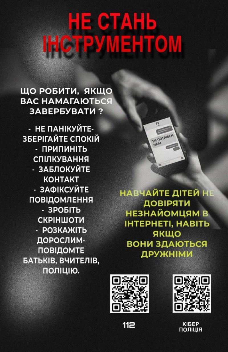 Закликали провести у навчальних закладах краю батьківські збори, залучити до них правоохоронців, щоб детально поспілкуватися про методи ворога вести кібервійну за участі неповнолітніх українців, а також про те, як вчасно розпізнати, що на дітей чинять психологічний тиск.
