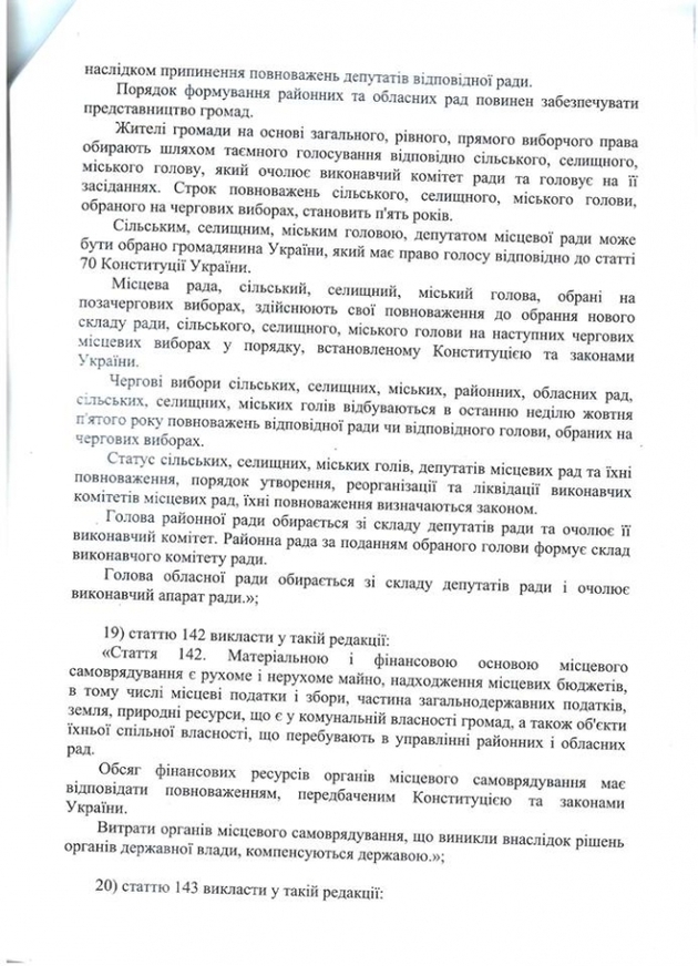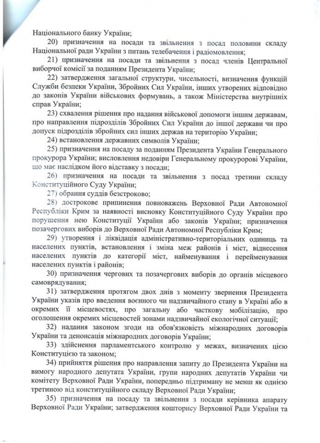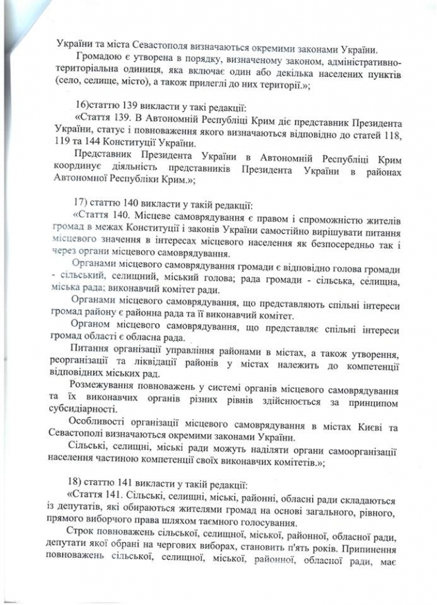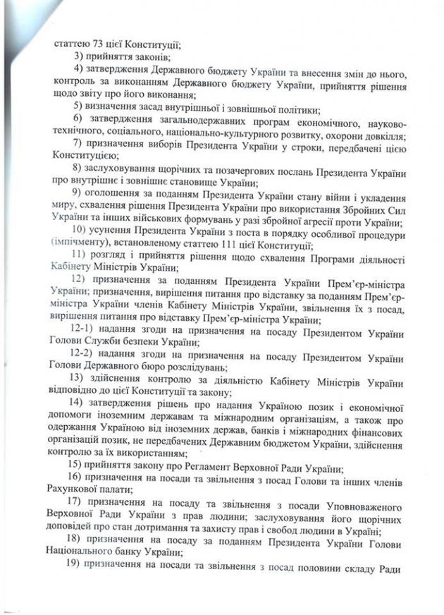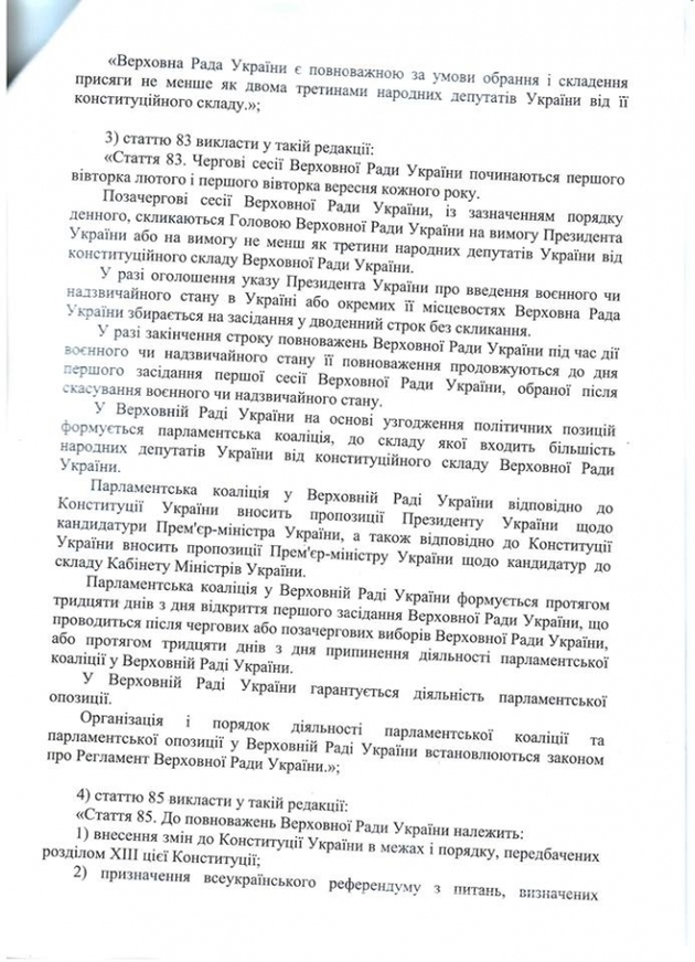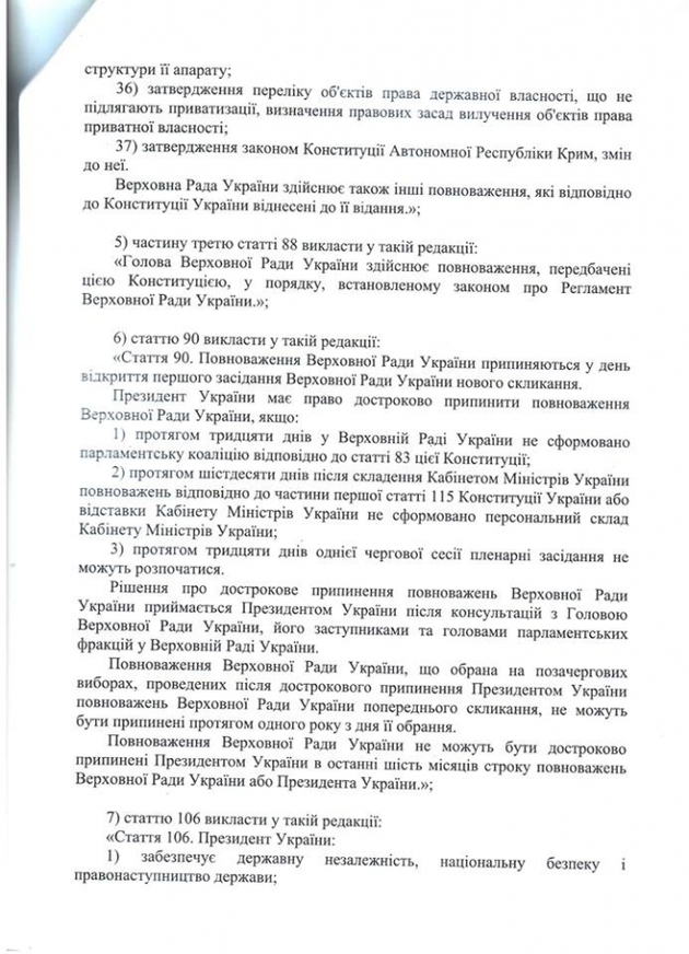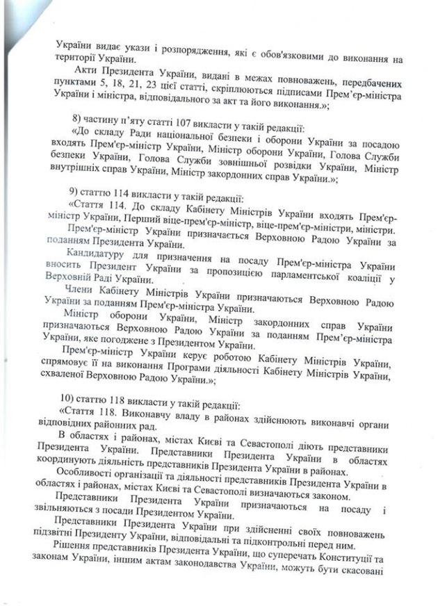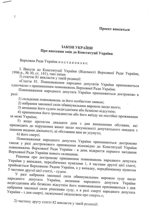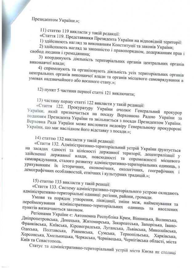 Він також опублікував 11 сторінок проекту змін до Конституції України, запропоновані Президентом.