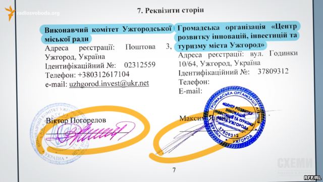 У результаті, грантові кошти на валютному рахунку заблоковані, суд задовольнив позов про стягнення 1,7 мільйона гривень на користь громадської організації. Виходить, нефінансовий партнер, який не може претендувати на кошти проекту, спокійно виграє суди. Хоча договірні відносини оформлені підозріло. Генеральний договір був підписаний в той самий день, що і Партнерська угода, але перший в місті Ужгороді, а другий документ – в місті Ярославі. Як одній людині підписати два документи в один день, але в різних країнах? Максим Янчий, представник від громадської організації, який підписував угоди, відмовився від коментарів для цього матеріалу.