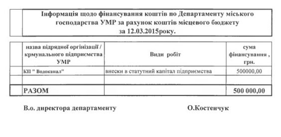 «Водникам» міста над Ужем «капнуло» 500 тисяч гривень (ДОКУМЕНТ)