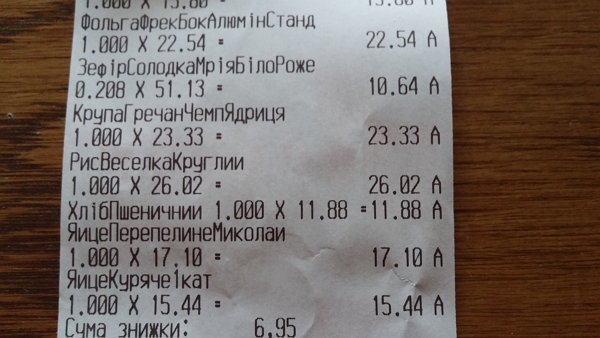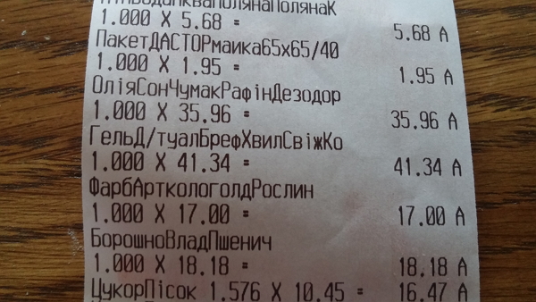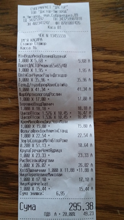 До слів експерта надаємо реально "космічні" ціни у закарпатському супермаркеті "Дастор" станом на 28.03.2015р : олія (1л) - 35,96 грн., мука (2 кг) - 18,18 грн., цукор (1,5 кг) - 16,47 грн., гречка (1 кг) - 23,33 грн., рис (1 кг) - 26,02 грн., хліб пшеничний - 11,88 грн., яйця (курячі) 10 шт. - 15,44 грн., яйця (перепелині) 20 шт - 17,10 грн.