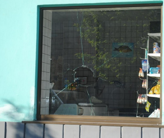 Сьогодні вночі невідомі розбили вікна на рибному магазині, що у самому центрі Мукачева. Коли саме трапився інцидент поки невідомо. Зараз сам магазин зачинений, але працює сигналізація. До слова, представників правоохоронних органів, станом на 8:10 ранку, на місці події не було. Нагадаємо, що в ніч із неділі на понеділок акт вандалізму зафіксований і в обласному центрі Закарпаття: тут невідомі потрощили лавиці та перегородили ними дорогу до пішохідного моста Ужгорода, інформує "ПМ".